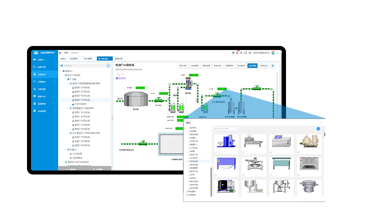 提供各種可視化組件,用戶(hù)可以根據(jù)項(xiàng)目及應(yīng)用需求,零編程、搭積木式的實(shí)現(xiàn)對(duì)現(xiàn)場(chǎng)設(shè)備和現(xiàn)場(chǎng)項(xiàng)目的工藝流程組態(tài)監(jiān)控。