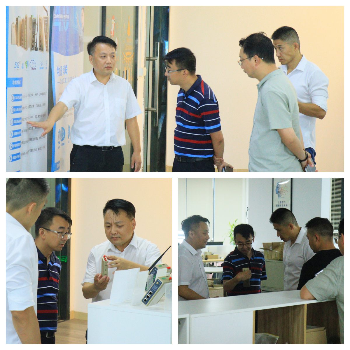 在參觀過程中,陳總向各位嘉賓詳細(xì)介紹了公司的戰(zhàn)略定位、產(chǎn)品特性、生產(chǎn)工藝以及市場前景等方面的情況。金牛區(qū)新經(jīng)濟(jì)和科技局領(lǐng)導(dǎo)對物通博聯(lián)在物聯(lián)網(wǎng)、數(shù)字化等領(lǐng)域的創(chuàng)新成果表示了高度的贊賞。
