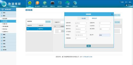 登錄網(wǎng)關(guān)管理界面,點(diǎn)擊數(shù)采->數(shù)采配置->添加設(shè)備。