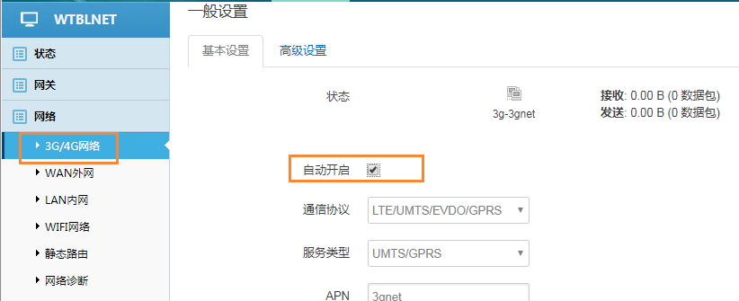 路徑:網(wǎng)絡(luò)---3G/4G----自動開啟---保存并啟用。