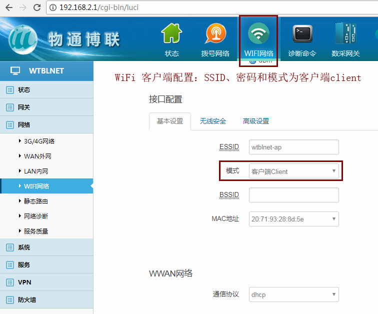 模式:客戶端Client(通過WiFi上外網(wǎng)請選擇client模式,如果是共享WiFi給其他設(shè)備請選擇AP模式)