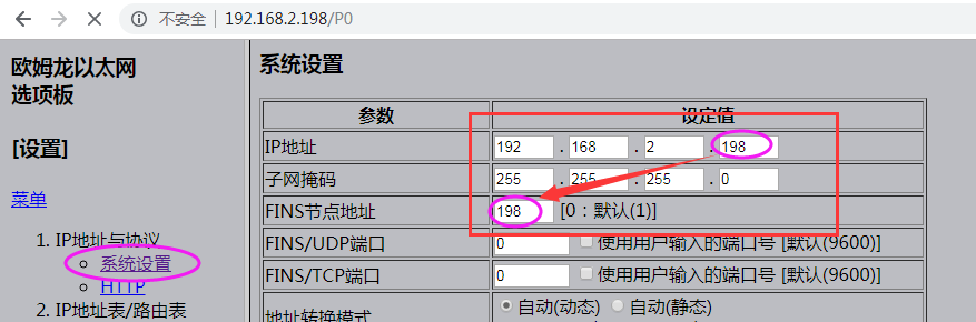 通過網(wǎng)線,連接PLC的CP1W-CIF41選件板網(wǎng)口與網(wǎng)關(guān)LAN口。