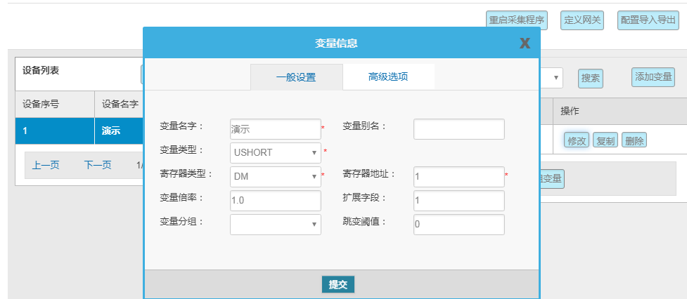 網(wǎng)關(guān)---數(shù)采配置---添加設(shè)備---添加變量---重啟采集程序并生效新的配置