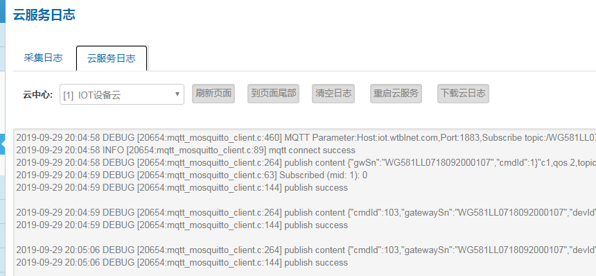 云接入日志用于診斷接入到云平臺的通信鏈路情況和數(shù)據(jù)報文情況。查閱路徑:網(wǎng)關(guān)---網(wǎng)關(guān)日志—云接入日志。
