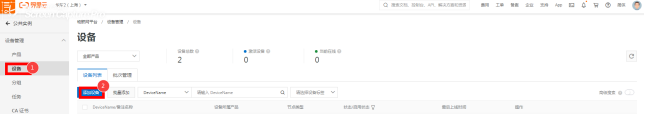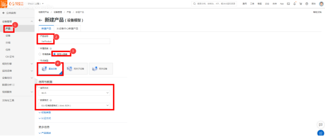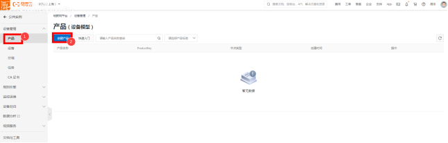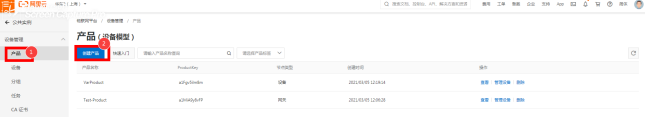 (1)設(shè)備創(chuàng)建產(chǎn)品