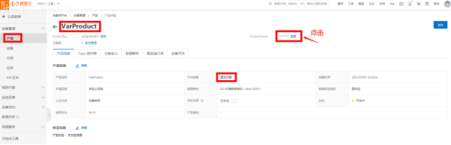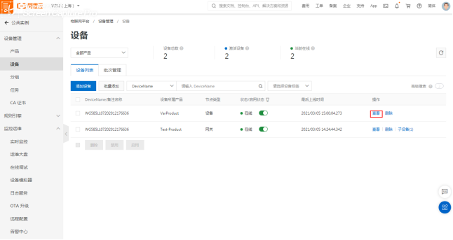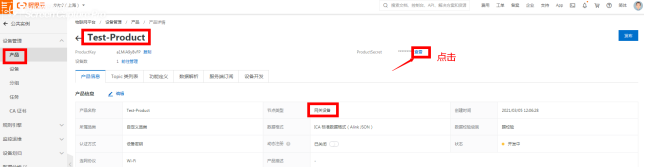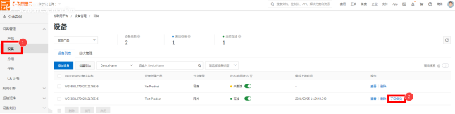 產(chǎn)品管理中點(diǎn)擊“節(jié)點(diǎn)類型為設(shè)備”的產(chǎn)品
