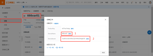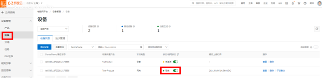 選擇剛添加產(chǎn)品設(shè)備的名稱,這里DeviceName填的是設(shè)備的名稱定義(可根據(jù)實(shí)際場(chǎng)景)詳見圖2