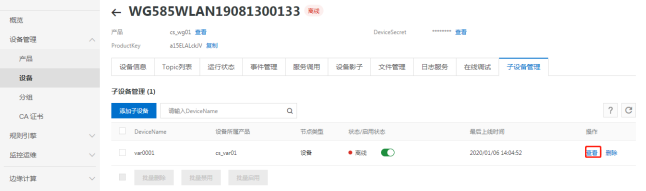 產(chǎn)品管理中點(diǎn)擊“節(jié)點(diǎn)類型為網(wǎng)關(guān)設(shè)備”的產(chǎn)品