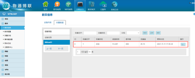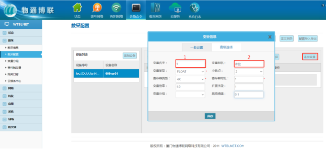填寫完畢后返回網(wǎng)關(guān)數(shù)據(jù)配置界面“添加變量”的數(shù)據(jù)參數(shù)