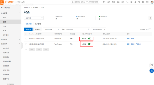 點(diǎn)擊公共實(shí)例進(jìn)入設(shè)備管理界面