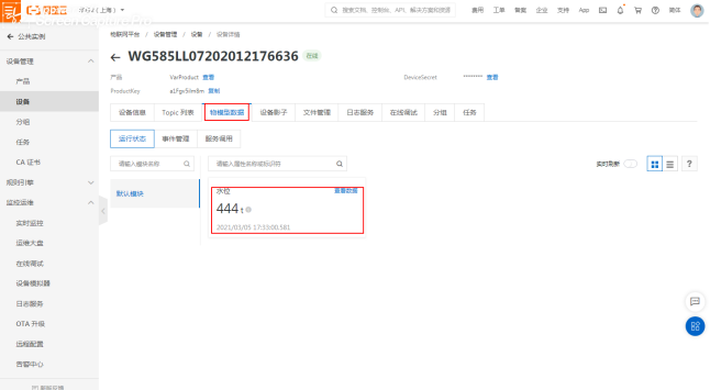 網(wǎng)關(guān)本地?cái)?shù)據(jù)采集是否有采到值,網(wǎng)關(guān)采集到的值是否上傳到阿里云平臺(tái)所顯示的值是否正確。