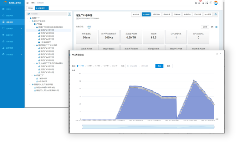 支持秒級(jí)頻率精準(zhǔn)獲取關(guān)鍵運(yùn)行參數(shù),對(duì)設(shè)備實(shí)時(shí)數(shù)據(jù)、歷史數(shù)據(jù)、報(bào)警數(shù)據(jù)、視頻監(jiān)控、工況數(shù)據(jù)等全面監(jiān)控,對(duì)設(shè)備運(yùn)行數(shù)據(jù)了如指掌。同時(shí)支持支持設(shè)備單向和多項(xiàng)遠(yuǎn)程控制,隨時(shí)隨地掌控設(shè)備運(yùn)行。