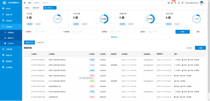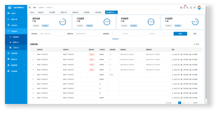 制定全面維保計(jì)劃,定期巡檢與預(yù)防性維護(hù),涵蓋報(bào)修、巡檢、維保等全流程工單管理、備品備件、遠(yuǎn)程維護(hù)等全生命周期可視化管理。