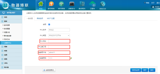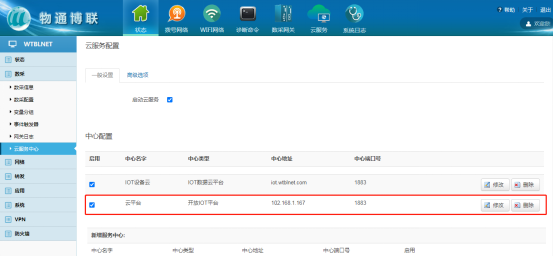 點擊修改后進入中心配置界面,填寫對應的MQTT連接參數(shù);