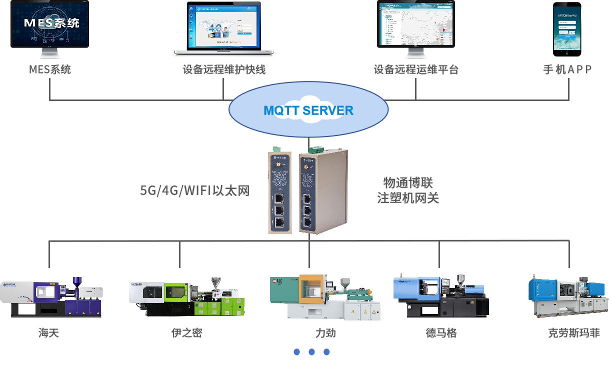 物通博聯(lián)注塑機網(wǎng)關是一款針對注塑機實現(xiàn)數(shù)據(jù)采集的設備,主要用于解決注塑機等傳統(tǒng)生產(chǎn)設備的數(shù)據(jù)采集、遠程監(jiān)控和信息化管理問題,網(wǎng)關支持各種注塑機的私有協(xié)議和其他工業(yè)標準協(xié)議(弘訊、科強、KEBA、恩格爾、住友、日精……),可以實現(xiàn)各種注塑機設備聯(lián)網(wǎng)、數(shù)據(jù)采集,實時傳輸注塑機注射壓力、油溫、模具溫度、注射速度等數(shù)據(jù)到本地服務器、云平臺、MES、ERP等等,為制造業(yè)數(shù)字化轉型提供了強大支持。