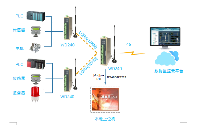 03、上位機(jī)通過LORA讀取WD240的IO和下掛的PLC數(shù)據(jù)