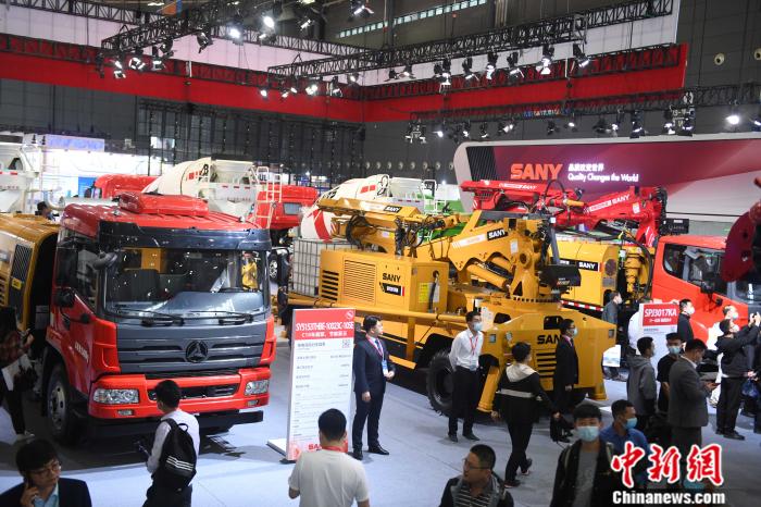 2021年5月19日,2021長沙國際工程機(jī)械展覽會上展出的工程機(jī)械產(chǎn)品。(資料圖片) 中新社記者 楊華峰 攝