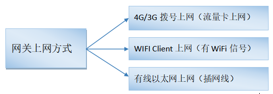 進(jìn)入網(wǎng)關(guān)WEB管理界面(http://192.168.2.1/)設(shè)置聯(lián)網(wǎng)方式,可選WIFI網(wǎng)絡(luò)、3/4G網(wǎng)絡(luò)(需要在網(wǎng)關(guān)通電前插入手機(jī)SIM卡,默認(rèn)已開(kāi)啟3/4G網(wǎng)絡(luò))、WAN外網(wǎng),三者只能選一個(gè)。