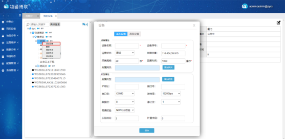 登錄物通博聯(lián)·設(shè)備云平臺(tái)(https://iot.WideIOT.com/),進(jìn)入“我的設(shè)備”編輯模式,添加節(jié)點(diǎn)、設(shè)備與機(jī)型信息。