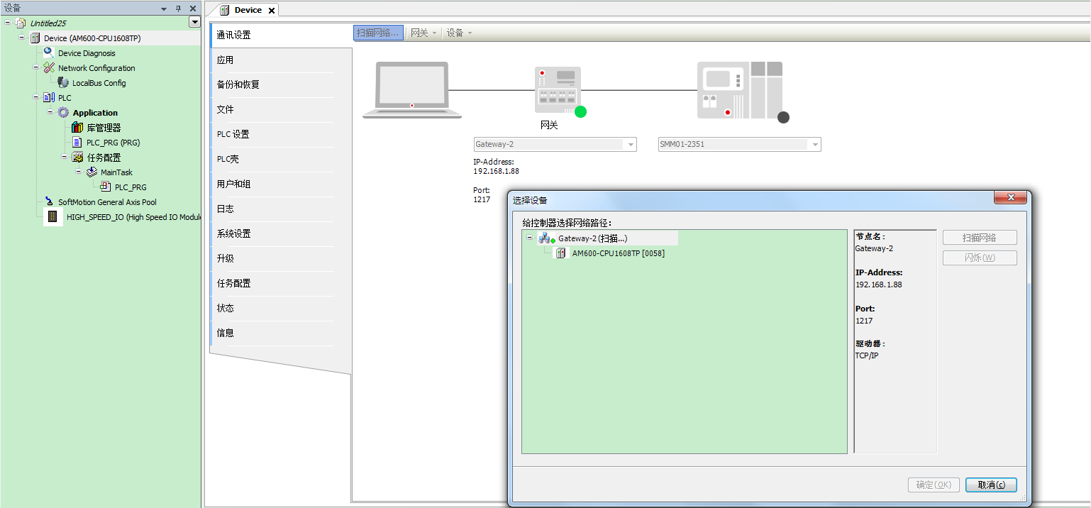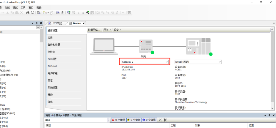 1、建立通道后,打開(kāi)InoProShop ,根據(jù)連接的AM600型號(hào)全稱,選擇工程型號(hào)。