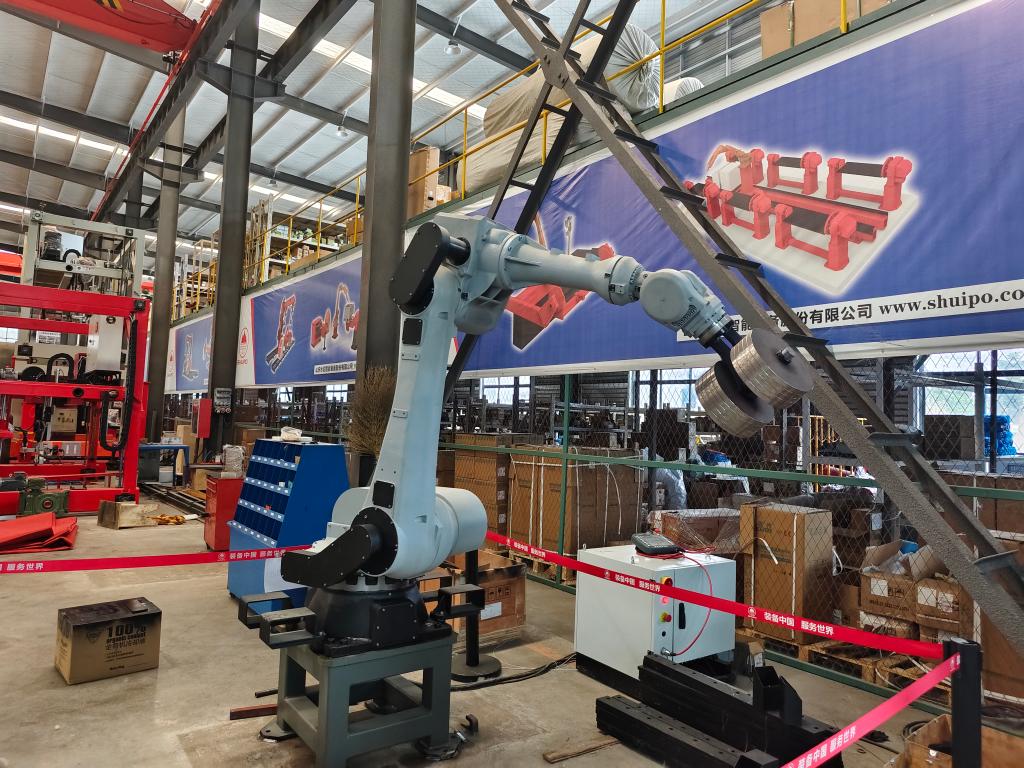 濟寧市梁山縣一家裝備制造企業(yè)自主研發(fā)的工業(yè)機器人。新華社記者邵魯文 攝
