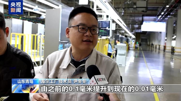 海爾工廠技術(shù)員 尹冬冬:AI識別使檢測精度提高了10倍左右,由之前的0.1毫米提升到現(xiàn)在的0.01毫米,生產(chǎn)效率提升了40%左右。