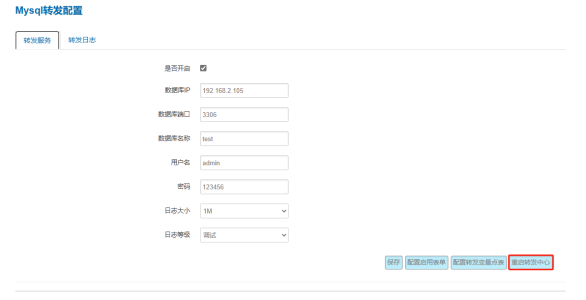 4、配置完成后,點(diǎn)擊“重啟轉(zhuǎn)發(fā)中心”,使配置生效