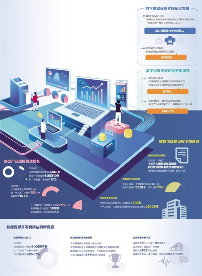 “十四五”時期,我國全面深化數(shù)據(jù)要素市場化配置改革,加快數(shù)字化綠色化協(xié)同轉(zhuǎn)型發(fā)展,推動數(shù)字中國建設(shè)取得顯著成就。