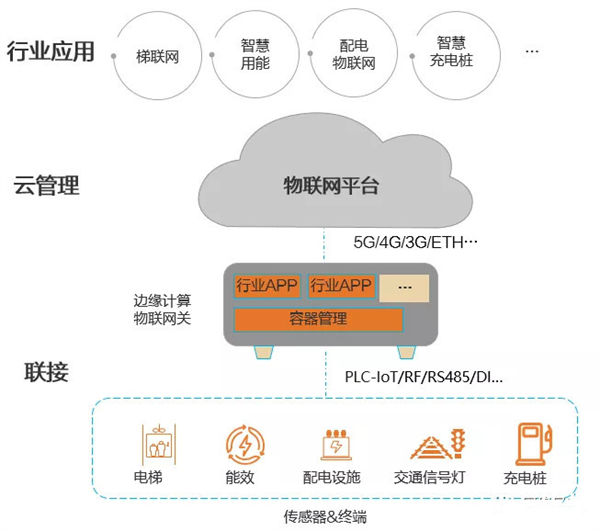 實現(xiàn)海量終端設(shè)備接入物聯(lián)網(wǎng)絡(luò),主要通過邊緣計算網(wǎng)關(guān)支持的各種物聯(lián)接口(IP化PLC/RF/RS485/RS232等)連接各種傳感器和終端,實現(xiàn)終端設(shè)備接入。