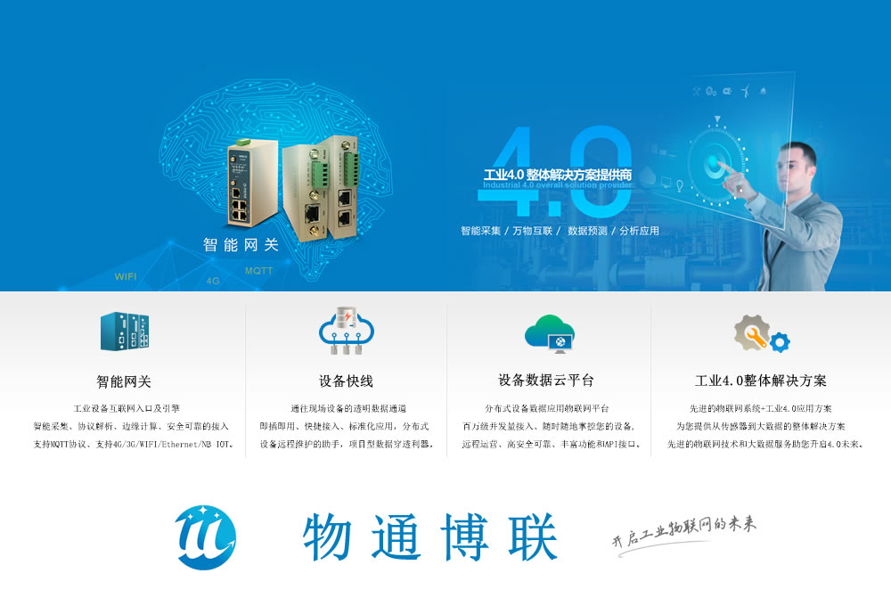 物通博聯(lián)是一家工業(yè)物聯(lián)網(wǎng)產(chǎn)品以及工業(yè)4.0解決方案提供商,專注于智能設(shè)備、智能工業(yè)以及行業(yè)(水務(wù)、電力、市政、樓宇、農(nóng)業(yè)、油井礦山)等領(lǐng)域提供物聯(lián)終端、智能網(wǎng)關(guān)、設(shè)備快線及應(yīng)用于平臺等智能化產(chǎn)品及應(yīng)用方案。