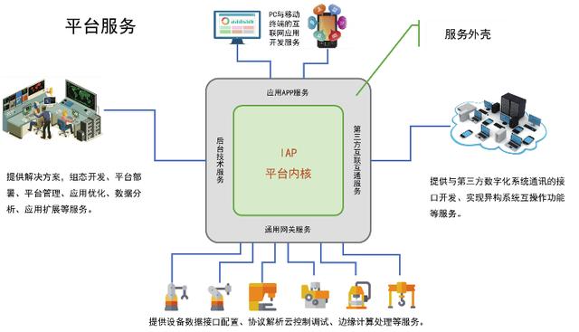 為此,必須要有一種操作系統(tǒng)性質(zhì)的基礎軟件來維持這樣的關系,并且能夠適應這種關系可能發(fā)生的各種變化。圖2是在工業(yè)互聯(lián)網(wǎng)4層架構基礎之上建立的一種新的體系架構表達形式。其中,工業(yè)互聯(lián)網(wǎng)內(nèi)核包含了大量的計算資產(chǎn),它們的作用是對工業(yè)互聯(lián)網(wǎng)的數(shù)據(jù)進行處理,并將處理結(jié)果返回工業(yè)系統(tǒng)中的管理者與生產(chǎn)者,以及對應的工業(yè)設備。我們把具有這種特征的內(nèi)核稱為一種平臺。在平臺的外部包裹著一圈軟件服務資產(chǎn),分別提供:工業(yè)互聯(lián)網(wǎng)與工業(yè)設備之間的數(shù)據(jù)通訊服務,工業(yè)互聯(lián)網(wǎng)開發(fā)、部署、運維等后臺支持服務,工業(yè)APP數(shù)據(jù)通訊服務,以及工業(yè)互聯(lián)網(wǎng)與其它信息技術系統(tǒng)的第三方數(shù)據(jù)通訊服務??傊?,這里所謂軟件服務資產(chǎn)本質(zhì)上就是一組與平臺外的信息系統(tǒng)維持數(shù)據(jù)通訊的功能模塊。