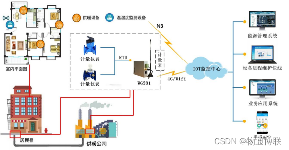 智慧供暖是物通博聯(lián)針對(duì)以上問題開發(fā)的工業(yè)物聯(lián)網(wǎng)方案。通過工業(yè)網(wǎng)關(guān)將供暖系統(tǒng)連接起來,對(duì)溫度、壓力、流量、開關(guān)量等等數(shù)據(jù)進(jìn)行采集,實(shí)現(xiàn)遠(yuǎn)程監(jiān)控、遠(yuǎn)程控制和遠(yuǎn)程維護(hù)。