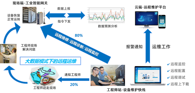 借助物聯(lián)網(wǎng)網(wǎng)關(guān)可以開通臨時(shí)的遠(yuǎn)程維護(hù)通道,工程師就能遠(yuǎn)程進(jìn)行程序上下載,也能進(jìn)行調(diào)試與升級(jí),減少設(shè)備故障帶來的損失與浪費(fèi)。