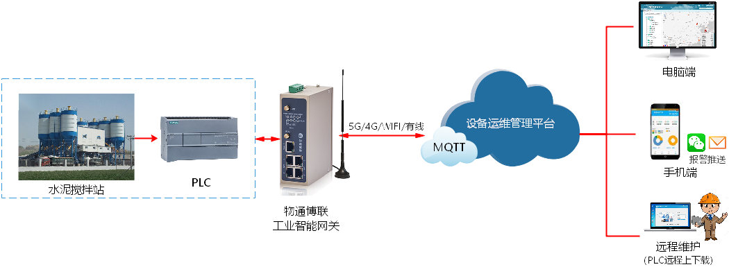 隨著大規(guī)模基礎設施建設的不斷開展、水泥攪拌設備的需求與日遞增,對其維護保養(yǎng)的要求也在不斷提高。在項目實施中,水泥攪拌機可能遍布全國各地,對于設備制造商提供設備運維服務帶來較大挑戰(zhàn)。一方面,企業(yè)需要付出較多人員、時間和精力前往現場出差,影響服務效率;另一方面,頻繁出差也在加重企業(yè)的成本負擔。因此,建立一套高效及時的設備運維系統有其必要性。