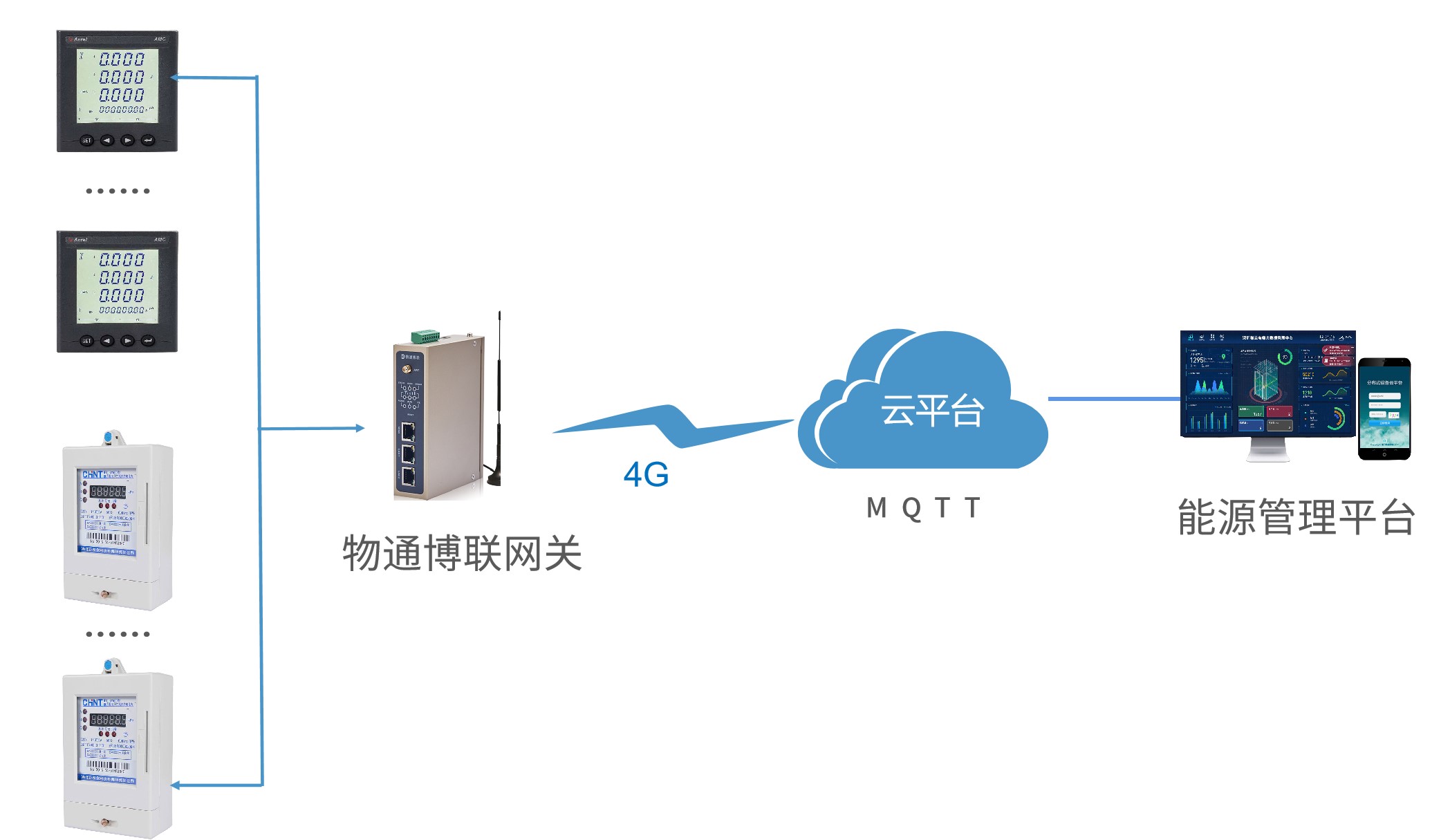 物通博聯(lián)提供產(chǎn)業(yè)園區(qū)電力能耗數(shù)采監(jiān)測物聯(lián)網(wǎng)解決方案。通過將物通博聯(lián)·工業(yè)智能網(wǎng)關部署到各個配電室現(xiàn)場,與電表RS485串口通信連接,能夠?qū)崟r采集電力能耗數(shù)據(jù)并通過4G網(wǎng)絡傳輸?shù)街腔蹐@區(qū)能耗管理平臺中,實現(xiàn)能耗遠程監(jiān)測、自動預警、成本核算、運維管理、數(shù)據(jù)分析等功能,為減少能耗成本、提高節(jié)能水平等提供可靠決策支持。